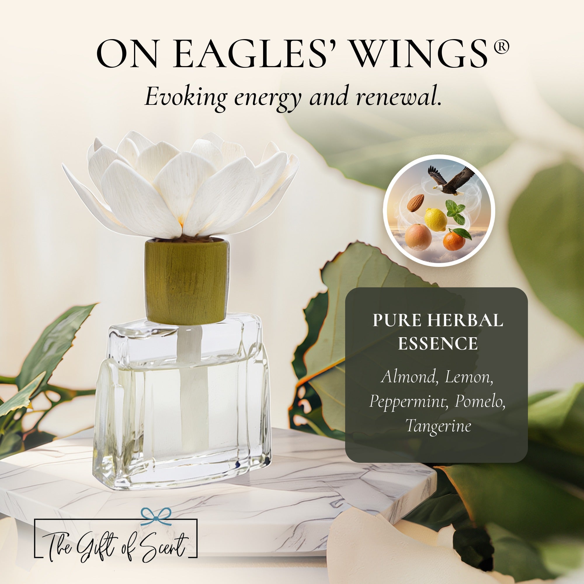 On Eagles’ Wings® – Bright and uplifting: Almond, Lemon, Peppermint, Pomelo, Tangerine