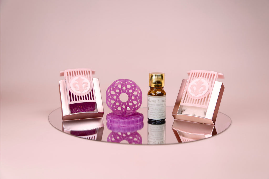 Function: Vent clip + visor clip / Oil Refill Pads and Scent Slices®.