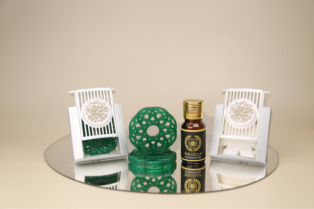Our automotive collection redefines on-the-go scent with refillable devices that complement every car interior.